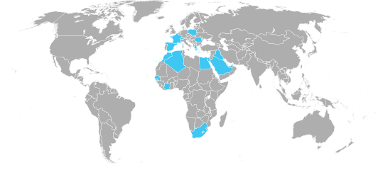 France, Morocco, Switzerland, Senegal, Ivory Coast, Poland, Romania, United Arab Emirates, Saudi Arabia, Iraq, Algeria, Greece, Egypt, South Africa, Spain